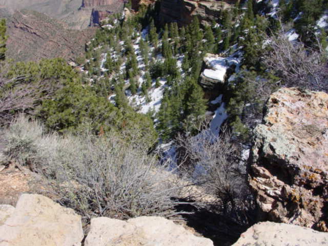 Today, we finally got to see The Grand Canyon. For those who have not seen it yet, let me tell you - it is really huge! Really! Because it is a canyon, one can not see it as it is being approached and, when you arrive, BAM, there it is. It is so vast that it is only seen in sections. On our way there, we saw our old friends the snowcapped mountains in Flagstaff and they still bring on the awe! Upon arrival, we went to the visitors center and then to see our first glimpse of the Canyon from the South Rim. We could not move very quickly because, once again, Sunshine became one of the stars of the day for kids, young and old. So many wanted to pet her and ask questions that Carol and I took turns - one held Sunshine and answered questions about Greyhounds and the other took photographs of the Canyon. The Canyon is so vast, and deep that we traveled far before we were even able to glimpse the muddy Colorado River, deep down in the bottom. There was snow below us along the South Rim, sometimes a couple of feet deep. We have run out of descriptive words to describe what we have seen on this trip and this, to date, is the capper. We are so privileged to be able to see so much of Gods work. Seeing The Grand Canyon is a reminder, to us, of how small we really are. Tomorrow we move to Bullhead City, AZ.